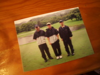 日本でも関東地方だけが晴れ!ってことが多いのに ネットの懸賞で当たったゴルフ(この時期ほとんどこれです) なのに、千葉だけが 雨! スタート前は小ぶりだったのに 土砂降りに近いほどの雨が降ってきた。 ずいぶん前 テーブルになにげなくのっていた写真を見て 大爆笑してしまった事がある、これはその時の写真。 夫がどしゃぶりの雨の中、ゴルフに行って 一緒に始めた友達と写っている写真。 その写真にはまったく同じ河童、いや、もとい、合羽を着た二人が 写っていたから。 もちろん、カップルでもないわけで 期せずしてたくさんある合羽の中からたまたま選んだものが 同じだったわけで、使用前使用後って感じで並んでいる 特徴ある合羽を着込んで真面目に写っているのが もう、めちゃ笑えたんだった。 本人達も気まずかったらしくその合羽はお蔵入りとなっていたっけ。 そんなことを思い出しつつ 雨が本格的に降り出したので しょうがなく、レインコートを羽織ることにした 夫のレインジャケットは誕生日に長男とお金を出し合って買った 渾身の合羽!なんだ 言って見れば「愛と涙の結晶、家族愛のつまった渾身の合羽」なんだ カートの中で合羽を着込んだら 何万分の1の奇跡の確立が起こった! 二人が着込んだ合羽は また、 また、 またまた、 同じものだった! 雨のゴルフ場 小さいけれど世にも恐ろしい悲鳴が二人の口から漏れたのを 私は聞き逃さなかったです。 ひえ〜〜〜〜〜〜〜〜 〜〜〜〜〜っ