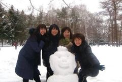 中央市場から円山に行くとき 私は円山に住んでいる友達に連絡する事になっていた けど 携帯の電池が切れていた 市場の中にはコンビニもなくて 連絡の取りようが無くなってしまった 旅行中かなりいばってたのに 最悪のドジだった でも誰も責めなかった(いい人たちだ) 伝書鳩もないし、あいにくノロシも持ってなかったし、 しょうがないので うろ覚えの一度行ったマンションにいきなりタクシーで行ったら 偶然友達のマンションの前を通ったので ここ、ここ、ここここぉ〜! と絶叫して飛び降り、202号室のインターフォンを押したら やさしい声が聞こえた 「はあい?!」 雪の降る円山公園をみんなで歩いた 林の中に雪だるまがにっこりしていたり、小さな丘みたいな山があってタイヤのそりが置いてあったり 童話の世界みたいだった 円山公園の雪だるま・・・またまた野うさちゃんの画像です♪ |