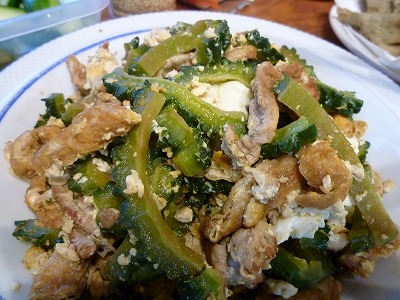 雲ひとつない空って この時期恐怖! 朝眼が覚めたとたん、散歩に行く 早く行けば行くほど涼しいから。 今日も怖ろしいほど晴れわたっている チャッピーと家族のために早く起きて散歩に行ってる私ってえらいと思う 世界で一番しっかりしているような気がする でも、 どんなに朝が早くても犬の散歩をしている人はいるので ちょっとだけ立ち話して 家に帰ると ブラウスはきれいに裏返しで 縫い目はくっきり、タグはひらひらしていて 笑ってしまった・・・ こんな時もういばるのはやめようと思う 今日は野菜をメインにゴーヤチャンプル(豚肉、卵、豆腐、油揚げ入り) |