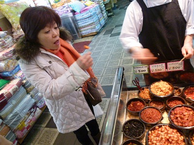 らっきょのキムチやらサワガニのキムチを試食しつつ